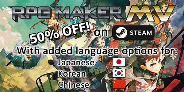 |  style="vertical-align: top" | To celebrate all these RPG Maker users, present and future, who will now be able to use RPG Maker MV in their native language, we've decided it is a great time for a monumental RPG Maker MV Sale!
